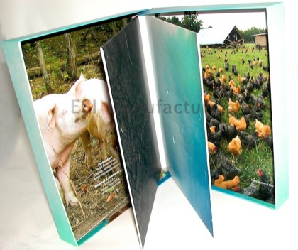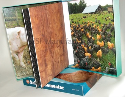 We also make deluxe boxes with video screen LCD panels embedded in them. The video boxes frequently hold high-end retail products such as perfumes, skin care products, or car keys. Corporations like to use the video boxes for training instruction or annual corporate meetings. Educational institutions use these for campus walk-throughs and student video notebook products like Teach ME. Be sure to check out our LCD Video Panel pages.